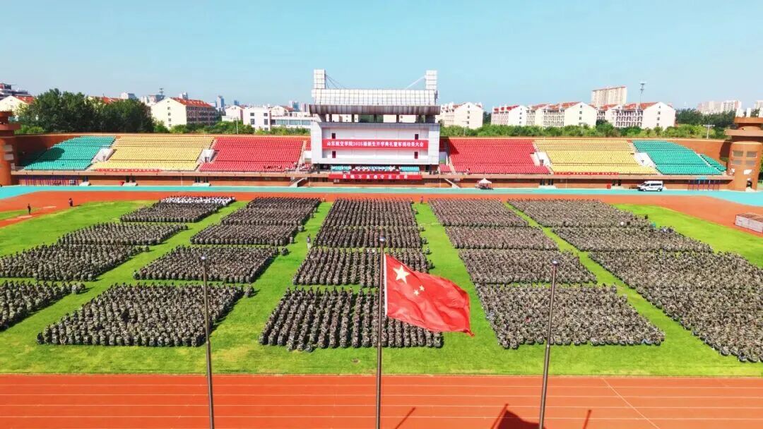 9月9日上午,山东航空学院2025级新生开学典礼暨军训动员大会在田径运动场举行。7000余名新生齐聚一堂,共同开启人生新征程。武警滨州支队上校支队长朱琪龙,我校党委书记李长海,党委副书记、校长李伟年,党委副书记殷梅英,党委委员、副校长郭新伟、孙银河、宫新军、刘宝民、杜伟出席大会。
