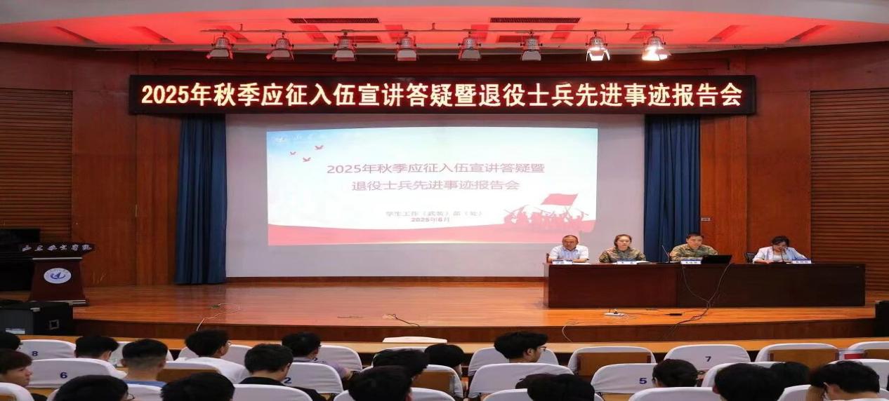 人生最美是军旅,志存高远励青春。6月16日晚,学校武装部在明德报告厅举办2025年秋季征兵宣讲答疑暨退役士兵先进事迹报告会。300余名有入伍意向的学生参加宣讲会。